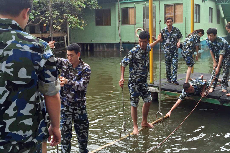 四度赤水環(huán)節(jié),要利用有限的工具(一根繩子、一根木棒)度過(guò)水上的四個(gè)難關(guān),是對(duì)團(tuán)隊(duì)智慧、溝通和協(xié)作的考驗(yàn)。